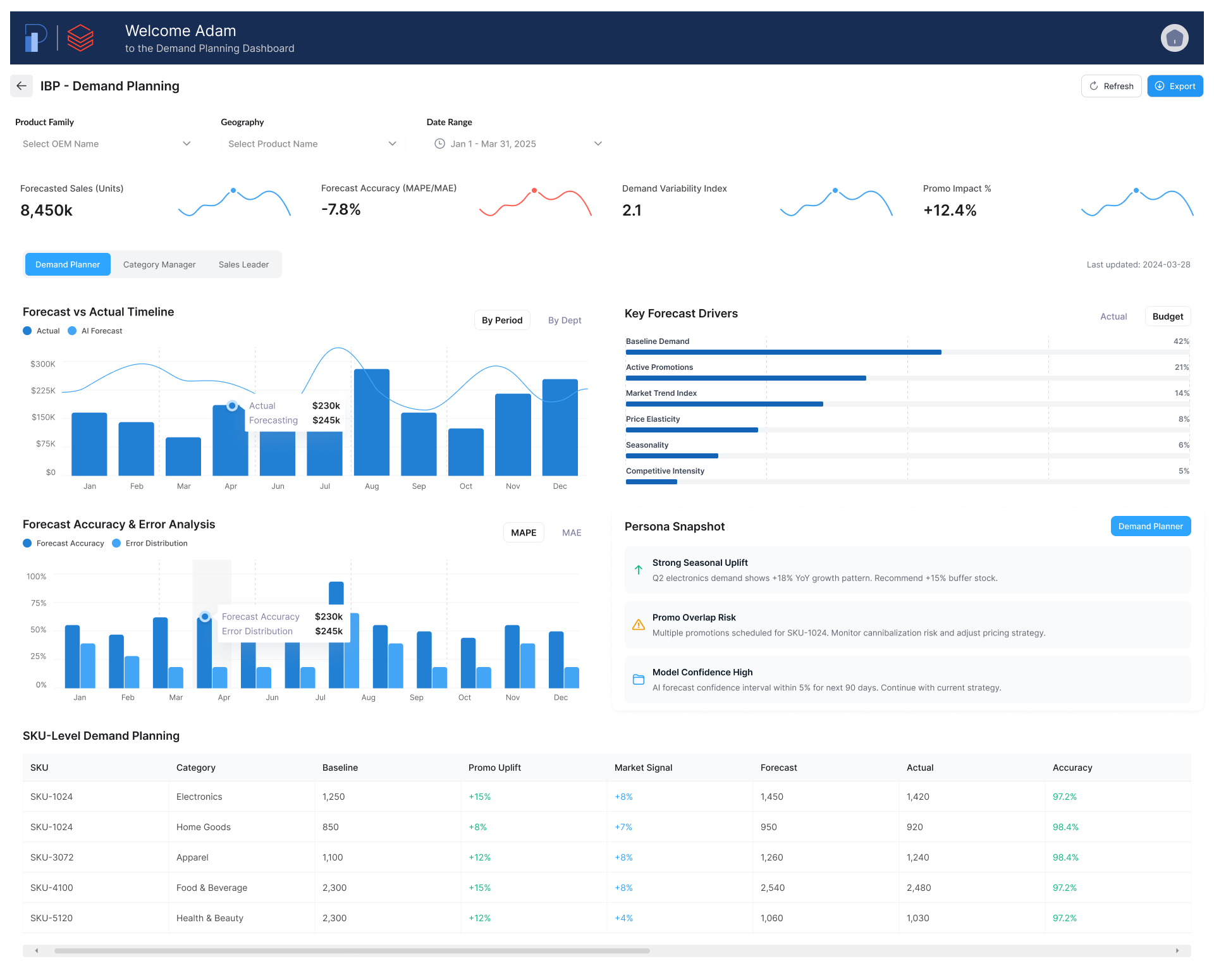 SKU, plant, and supplier pivots with Sigma’s familiar UI built for adoption and speed.